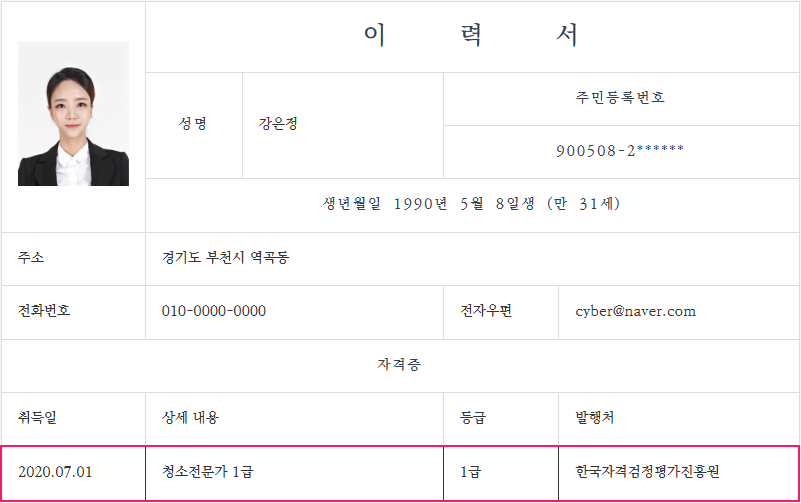 정식으로 이력서에 첨부를 할 수 있습니다.